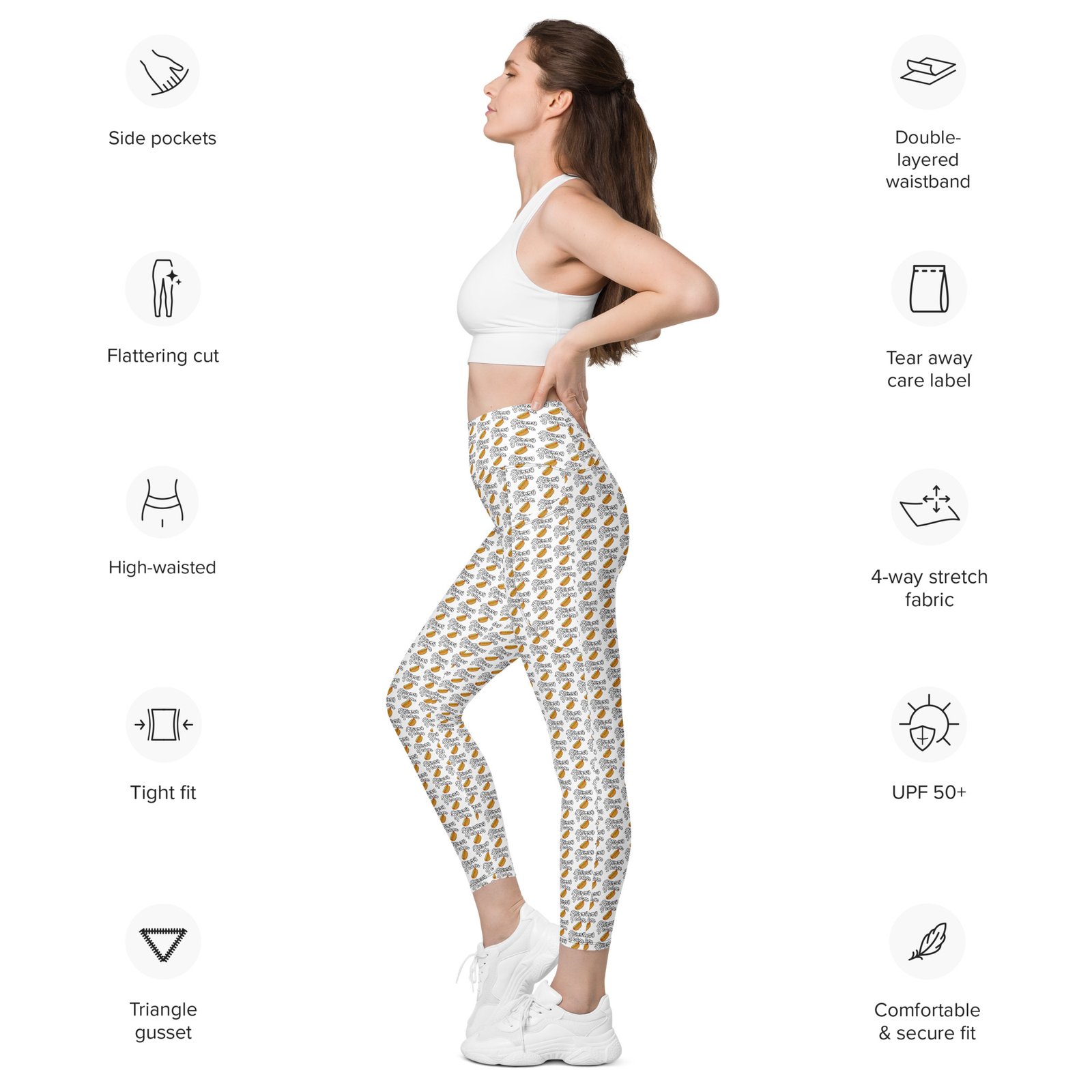 Meet your new favorite pair of pocket leggings. Featuring a classic, high-waisted cut, exceptional comfort, and two practical side pockets, these semi-compression leggings will support you during workouts and casual strolls around the city. Get yours now!